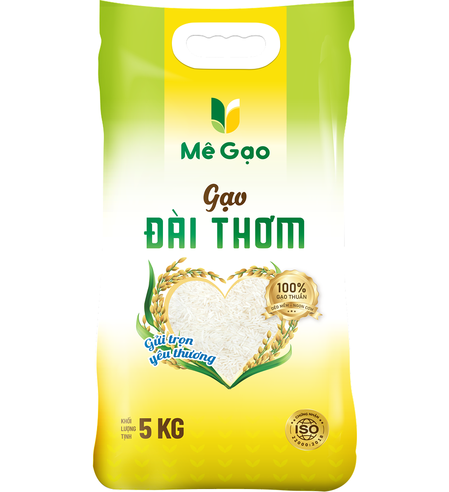Gạo đài thơm của Mê Gạo được chế biến từ giống lúa thuần chủng thượng hạng, theo quy trình sản xuất lúa gạo bền vững. Sản phẩm đạt tiêu chuẩn về an toàn vệ sinh thực phẩm FDA, HALAL, HACCP, ISO 22000:2018.