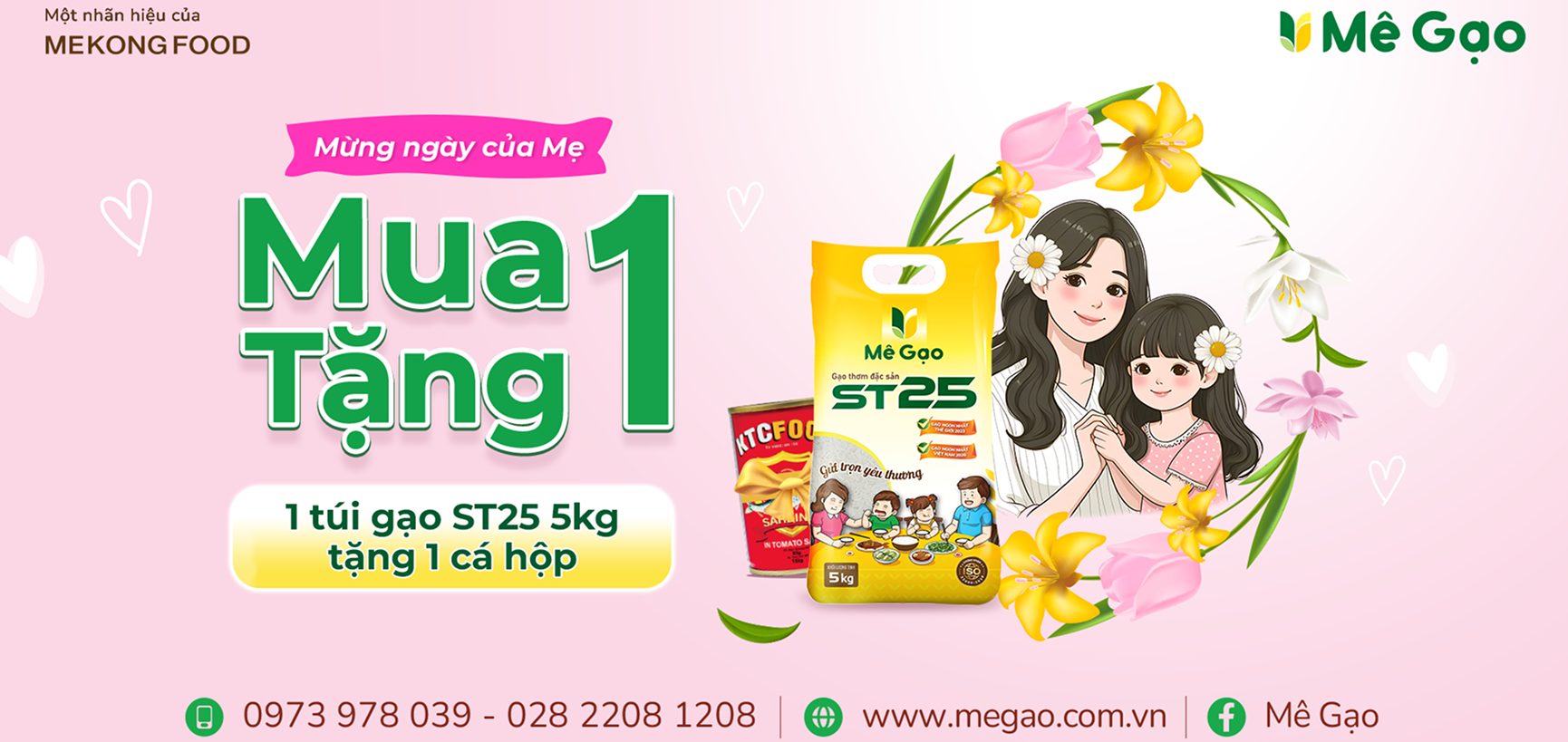 – Chỉ cần mua 1 túi gạo ST25 5kg được tặng ngay 1 cá hộp KTC cho bữa ăn ngon lành và tiện lợi.