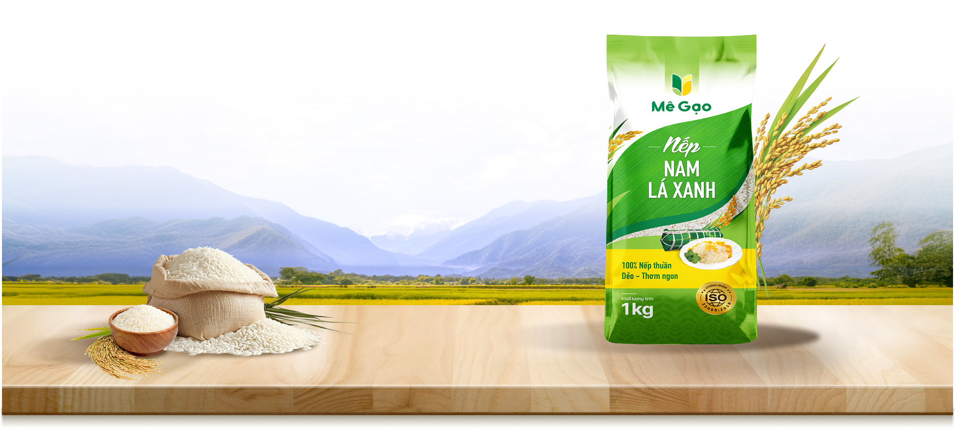 Gạo thơm đặc sản Nếp nam lá xanh của Mê Gạo được chế biến từ giống lúa thuần chủng thượng hạng, theo quy trình sản xuất lúa gạo bền vững. Sản phẩm đạt tiêu chuẩn về an toàn vệ sinh thực phẩm FDA, HALAL, HACCP và ISO 22000:2018
